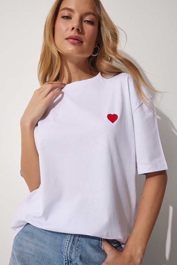 The embroidered heart on the chest is a delicate and subtle accent that adds charm and a romantic touch to the T-shirt. The white color makes the T-shirt versatile and easy to pair with other items in your wardrobe.