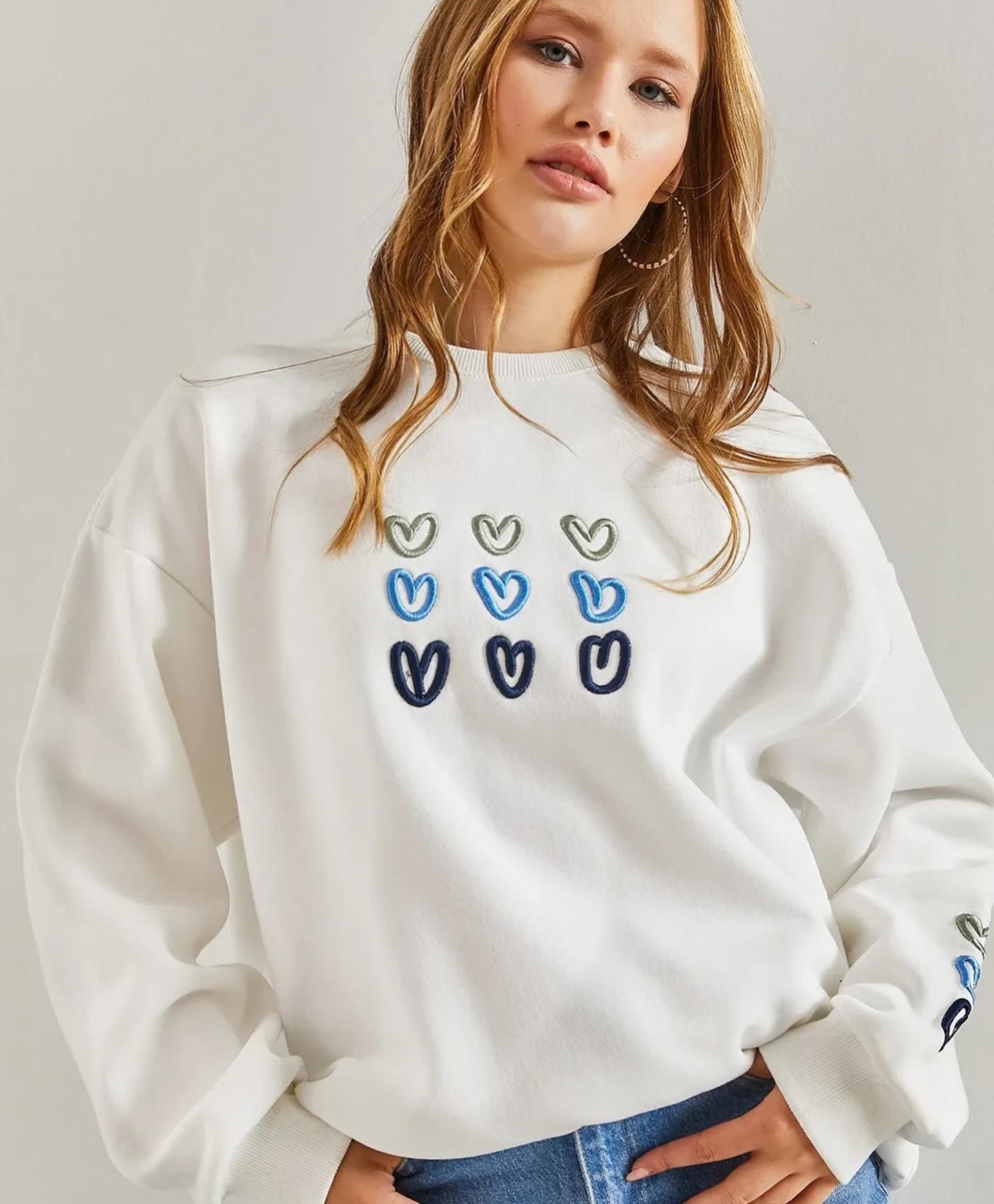 Bluza Bianca w serca to idealne uzupełnienie zimowej garderoby.