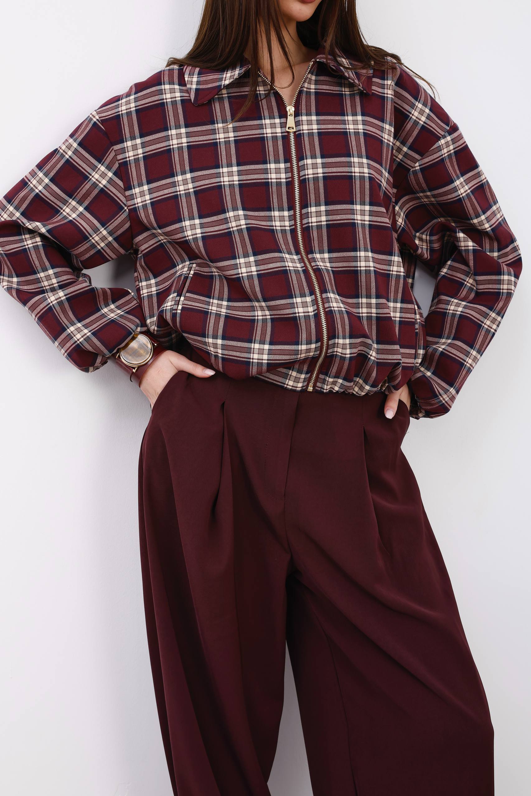 Stylowa bomberka w ponadczasową kratkę, która idealnie łączy wygodę z modnym wyglądem. Model z delikatną gumką w pasie pięknie podkreśla sylwetkę i zapewnia komfort noszenia na co dzień. Klasyczny krój z zamkiem błyskawicznym sprawia, że kurtka świetnie sprawdzi się zarówno w casualowych, jak i bardziej dopracowanych stylizacjach.