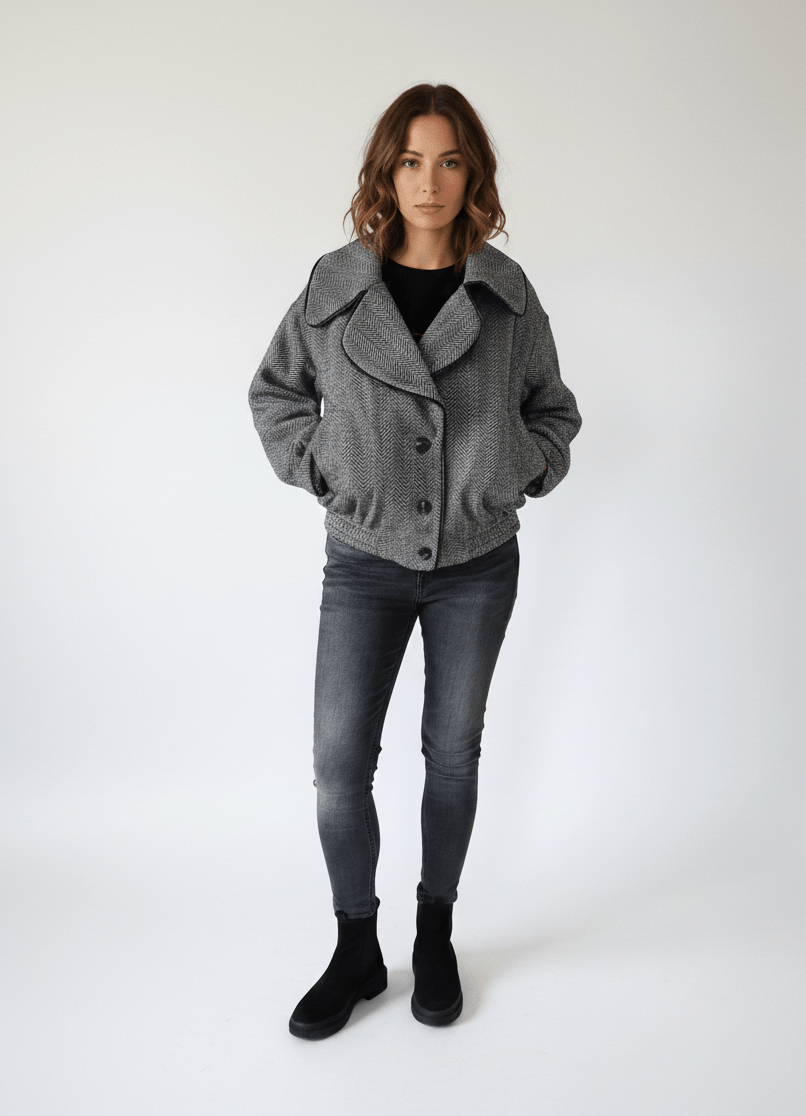 Masz tu coś więcej niż zwykłą kurtkę. To jest krótki płaszcz, który łączy swobodę oversize'u z idealnym dopasowaniem w talii. Zapomnij o workowatych fasonach – ten model rysuje sylwetkę, a jednocześnie daje Ci ten pożądany luz.