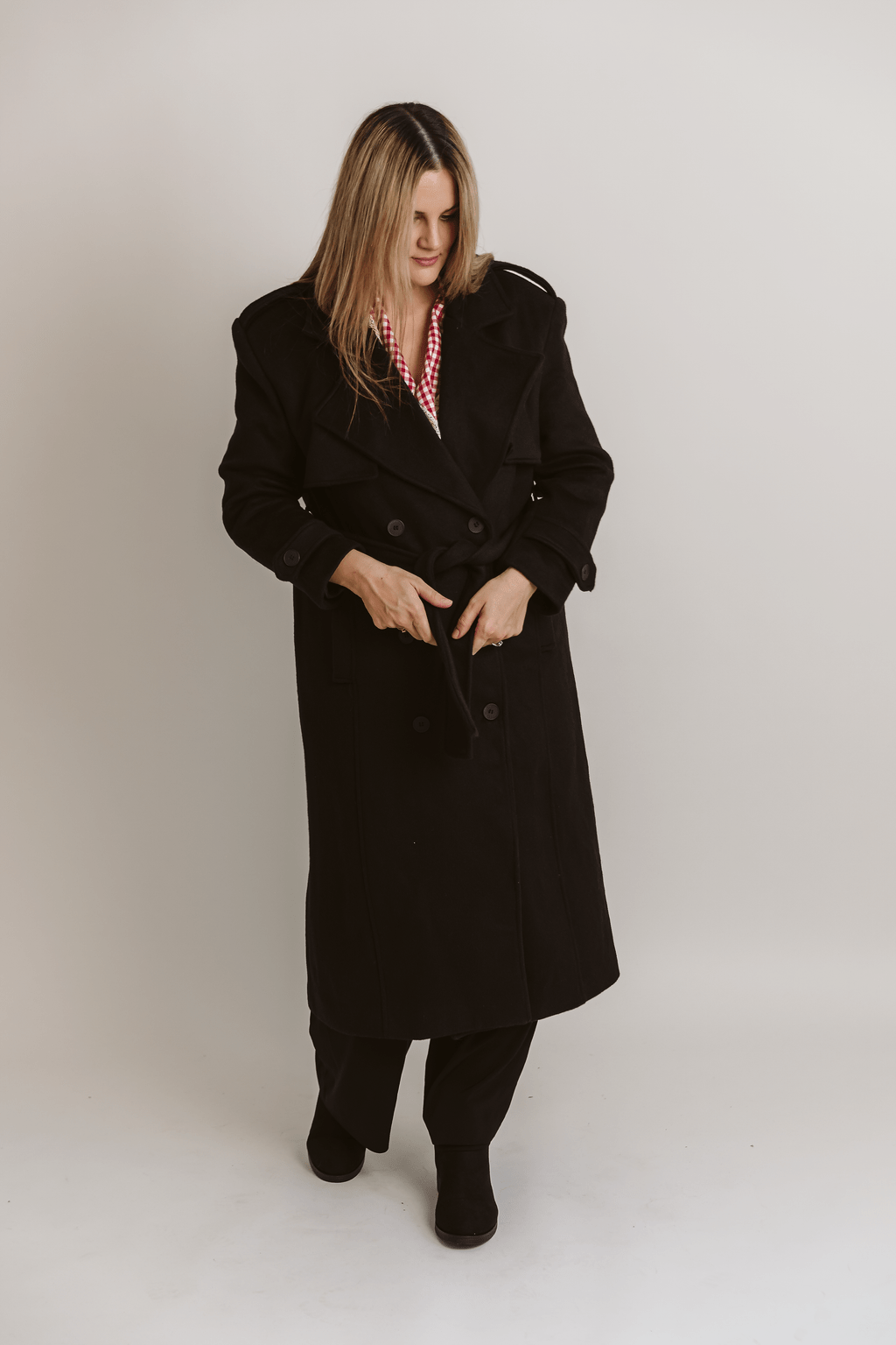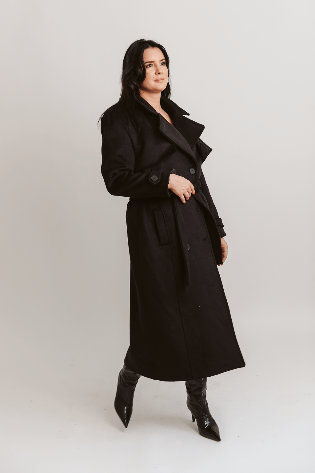 Odkryj swoją moc w czerni. Nasz czarny płaszcz z miękkiej wełny to więcej niż tylko okrycie wierzchnie – to wyraz Twojej siły i niezależności. Elegancki kołnierz i taliowany krój podkreślają figurę, a praktyczne kieszenie dodają funkcjonalności. Ten ponadczasowy model doskonale dopasowuje się do każdej sylwetki i pasuje zarówno do codziennych, jak i wieczorowych stylizacji. Poczuj się pewna siebie w każdej sytuacji.